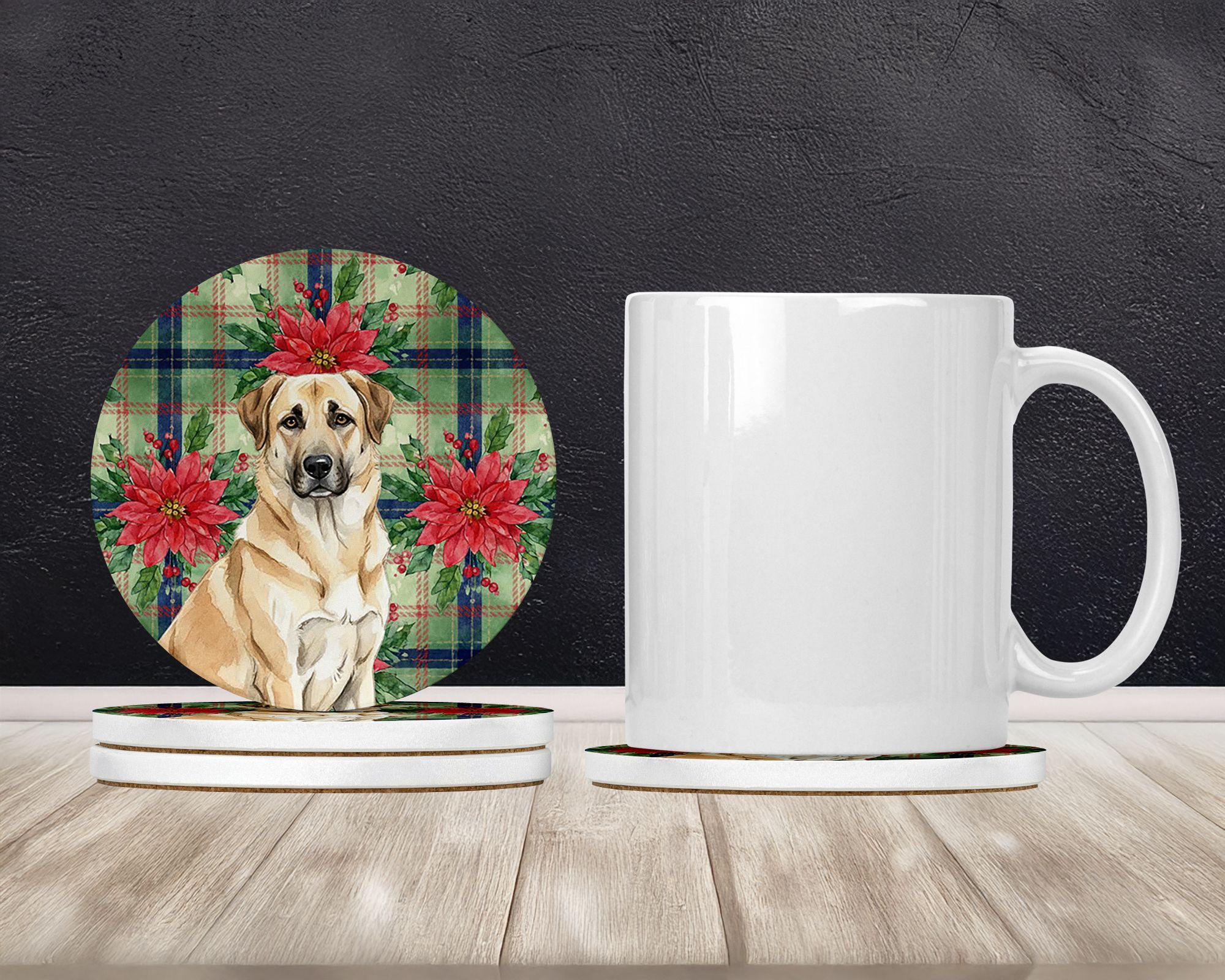 Anatolian Shepherd Dog Christmas PoinsettIas Large Sandstone Coasters Pack of 4 Absorbent Round Coasters Decor Gifts for Men or Women, 4 in